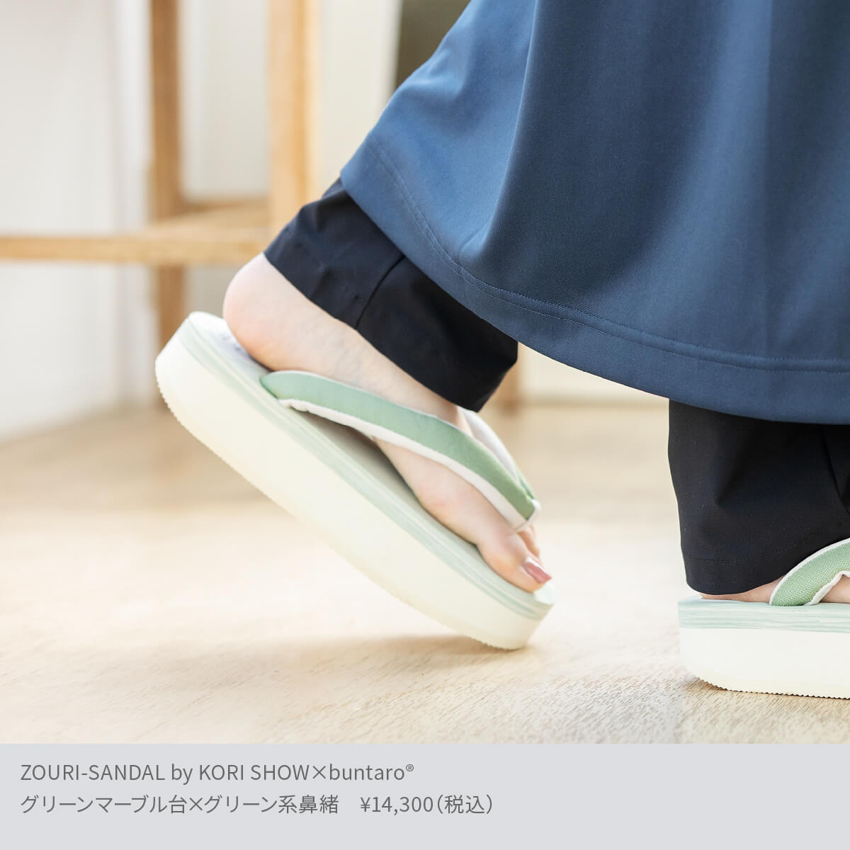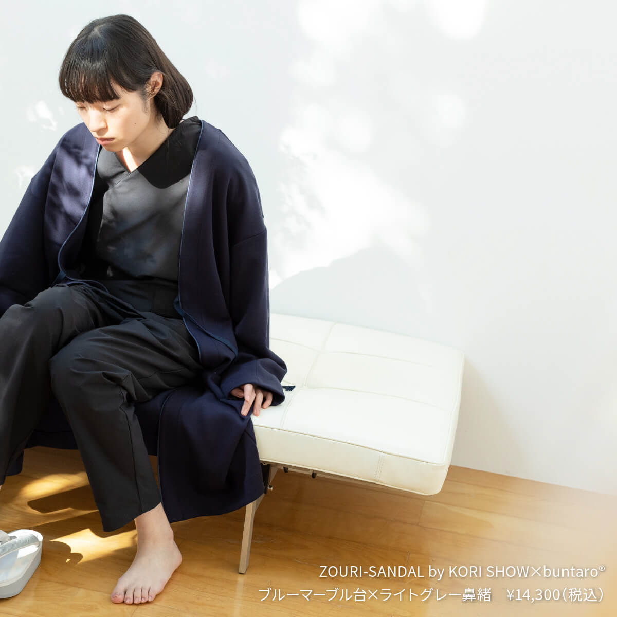 靴の生産地として知られる神戸の老舗素材メーカーが開発した、衝撃吸収性に優れた最高品質の“AIR rubber”を採用した草履です。 鼻緒には日本の住まいを下支えする撥水効果の高い特別な“畳縁”を採用し、奈良の職人が手作業で鼻緒に仕上げました。 室内/屋外気軽にご利用いただけるストレスフリーなサンダルをお楽しみください。 Production produce buntaro®